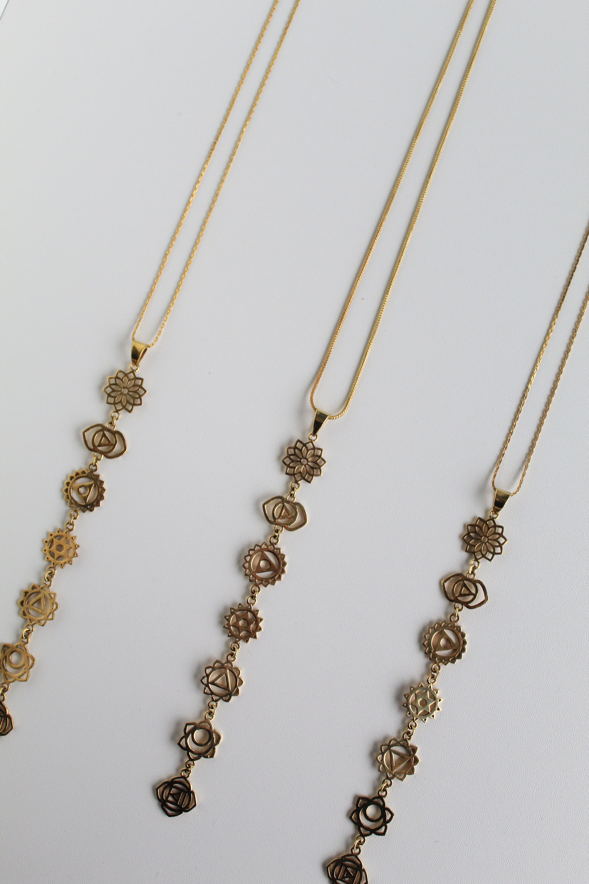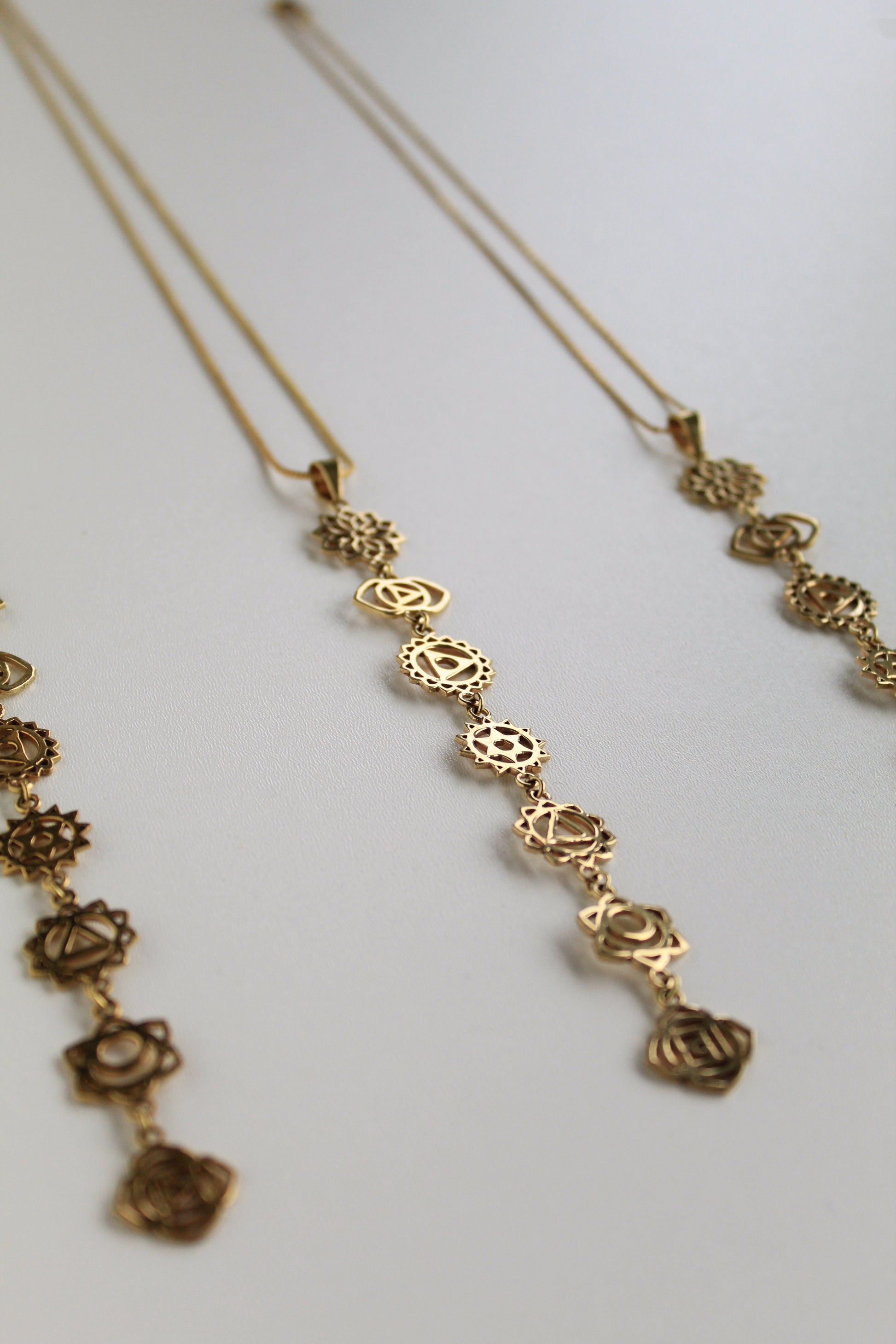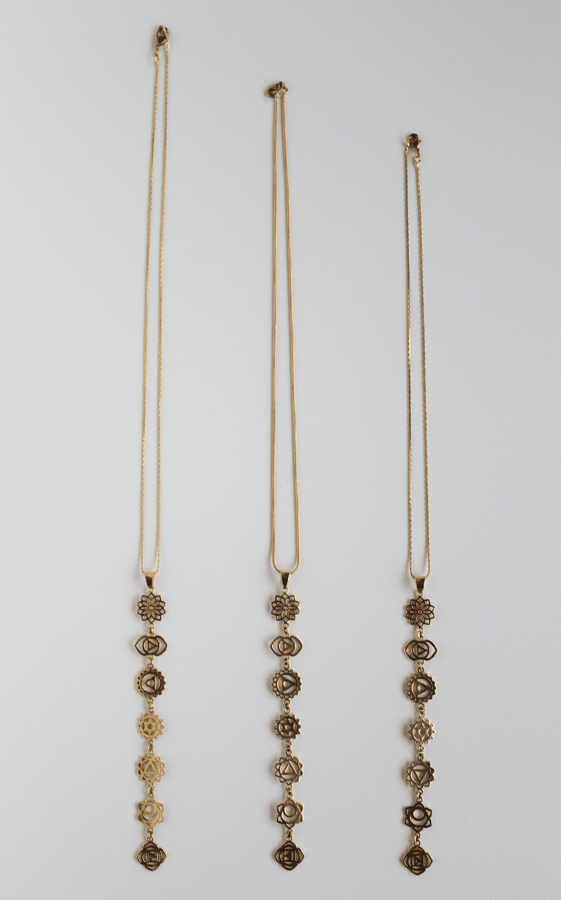 Septynių Čakrų vėrinys, pagamintas iš žalvario, atsparus dėvėjimuisi, vandeniui ir kasdieniam naudojimui. Auksinės spalvos.